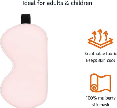 Amazon Basics Genuine Natural Mulberry Silk Curved Sleep Eye Mask with Adjustable Strap, One Size, Pink
