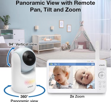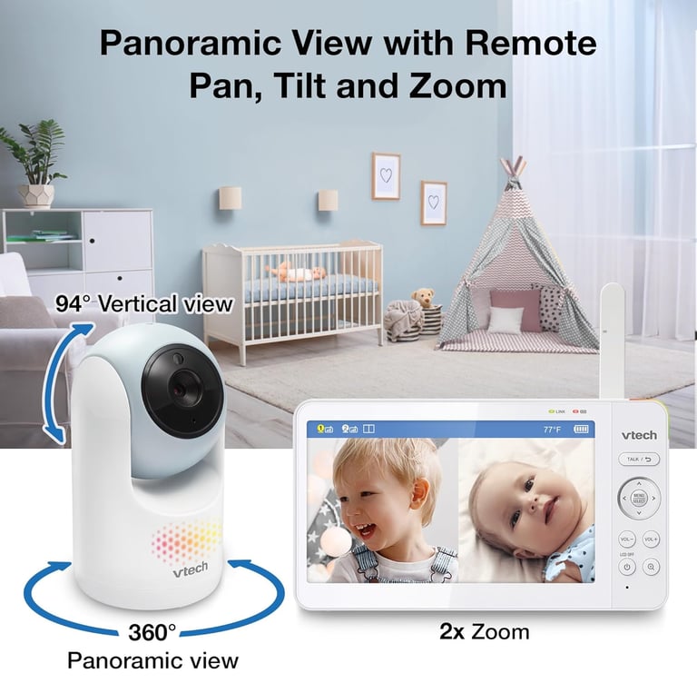 VTech 2-Cameras Video Baby Monitor with 7" Color LCD Screen, Rechargeable Battery, Video and Audio Streaming, Pan-Tilt-Zoom, Touch Multi-Color Night Light, Two-Way Talk: Advanced Max Twin