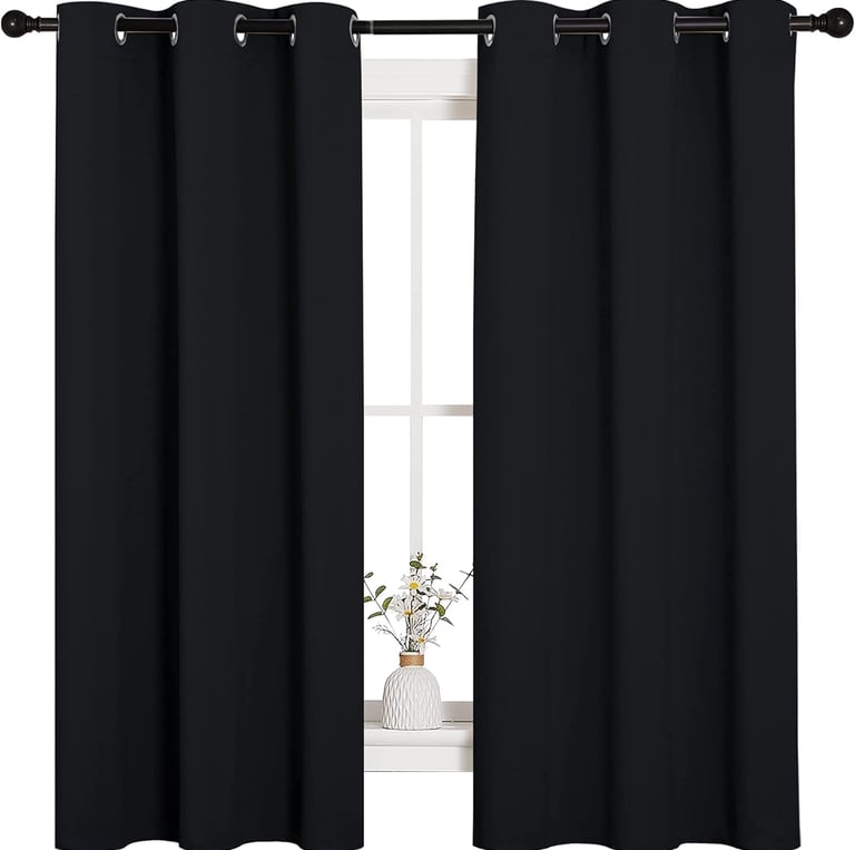 NICETOWN Pitch Black Solid Thermal Insulated Grommet Blackout Curtains/Drapes for Bedroom Window (2 Panels, 42 inches Wide by 63 inches Long, Black)